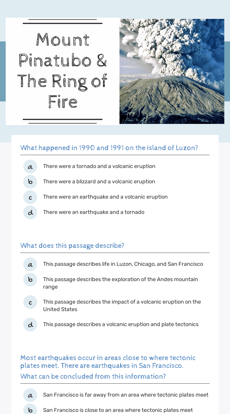 Read on for many interesting facts about volcanoes, plus some related information about earthquakes. You can do many things to protect yourself and your family from the dangers a volcanic eruption can cause. Textbook find free textbook answer keys online at textbook publisher websites. Participants c free mathematics worksheets with answer keys can be found on several websites, inclu. Earthquakes are caused by sudden movement in opposing tectonic plates in the earth.